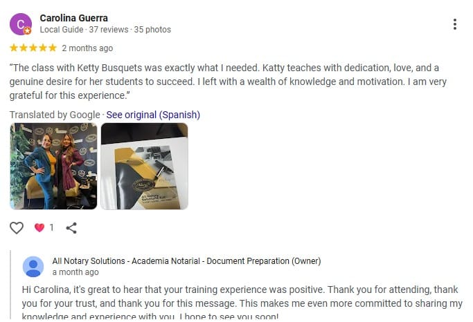 Fundada por Ketty Busquets, Notary Public desde 2008, educadora y mentora de cientos de Notary Publics en todo el país.