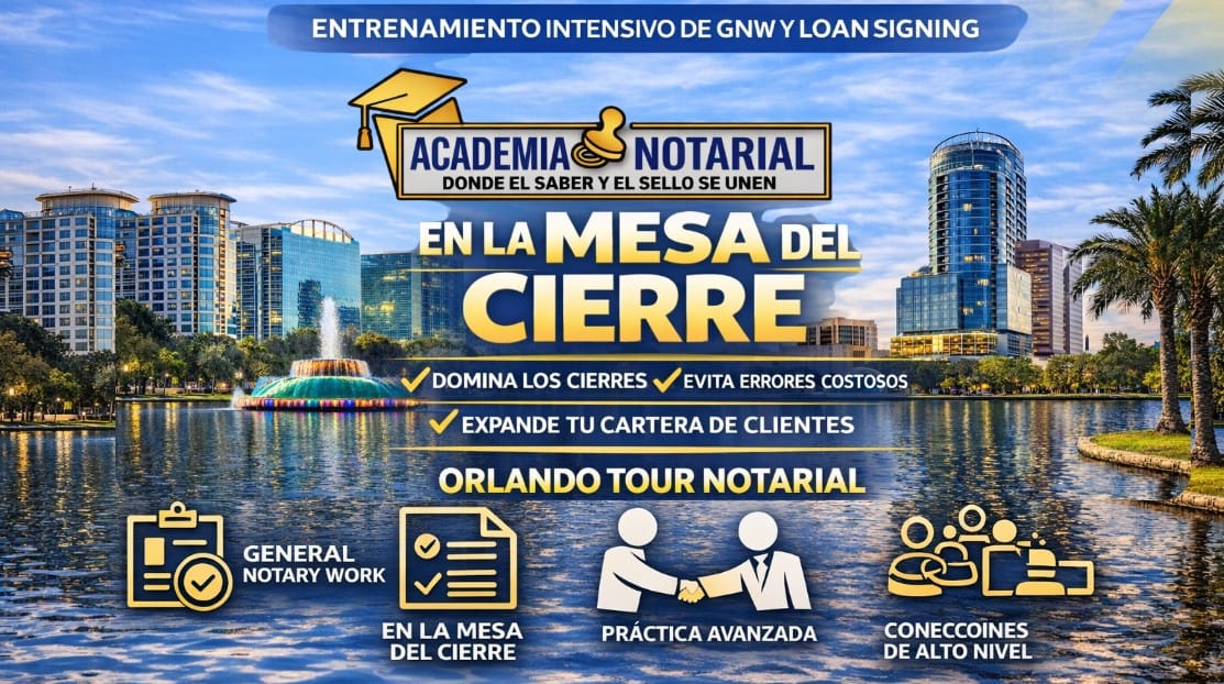 Un entrenamiento presencial intensivo donde aprenderás cómo se desarrolla realmente un cierre de préstamo y cuál es el rol del **Notary Public en la mesa de firma.